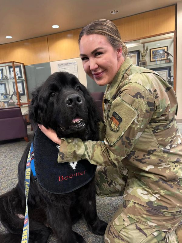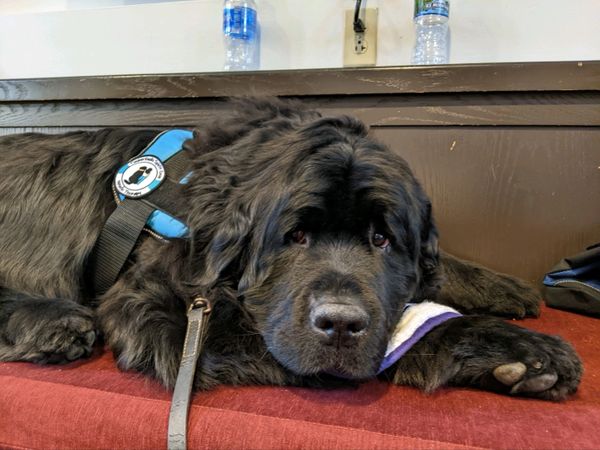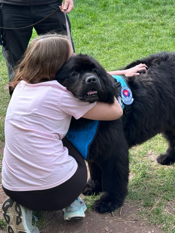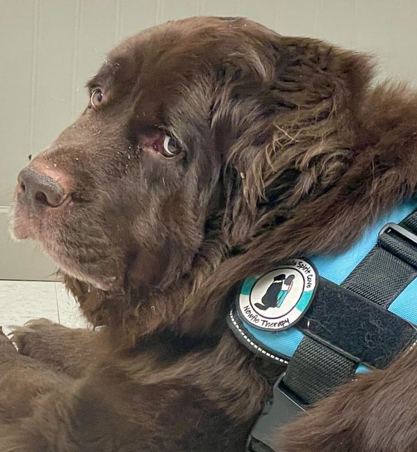 Halle Bear and Toby are currently working in the Charleston, SC area, but will be based permanently out of our new permanent headquarters, Spirit Cove Animal Therapy Ranch in Hendersonville, NC opening in Spring of 2026. If you are interesting in scheduling a session with Halle Bear, Toby or another therapy animal throughout the country, or would like to learn more about our programs please email us at info@newfietherapy.org.